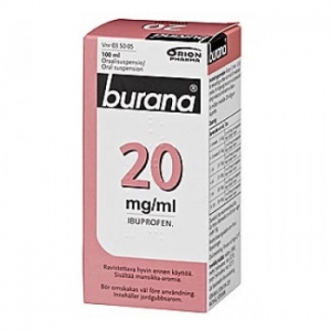 Раствор жаропонижающий Burana 20 мг, 100 мл в продаже в интернет-магазине https://finskii-tovary.ru/. Цена 1600 руб. Товар привезен из Финляндии, куплен в официальном магазине или аптеке, поэтому на упаковке не будет описания на русском языке. Состав и инструкцию по применению Вы найдете в конце страницы.